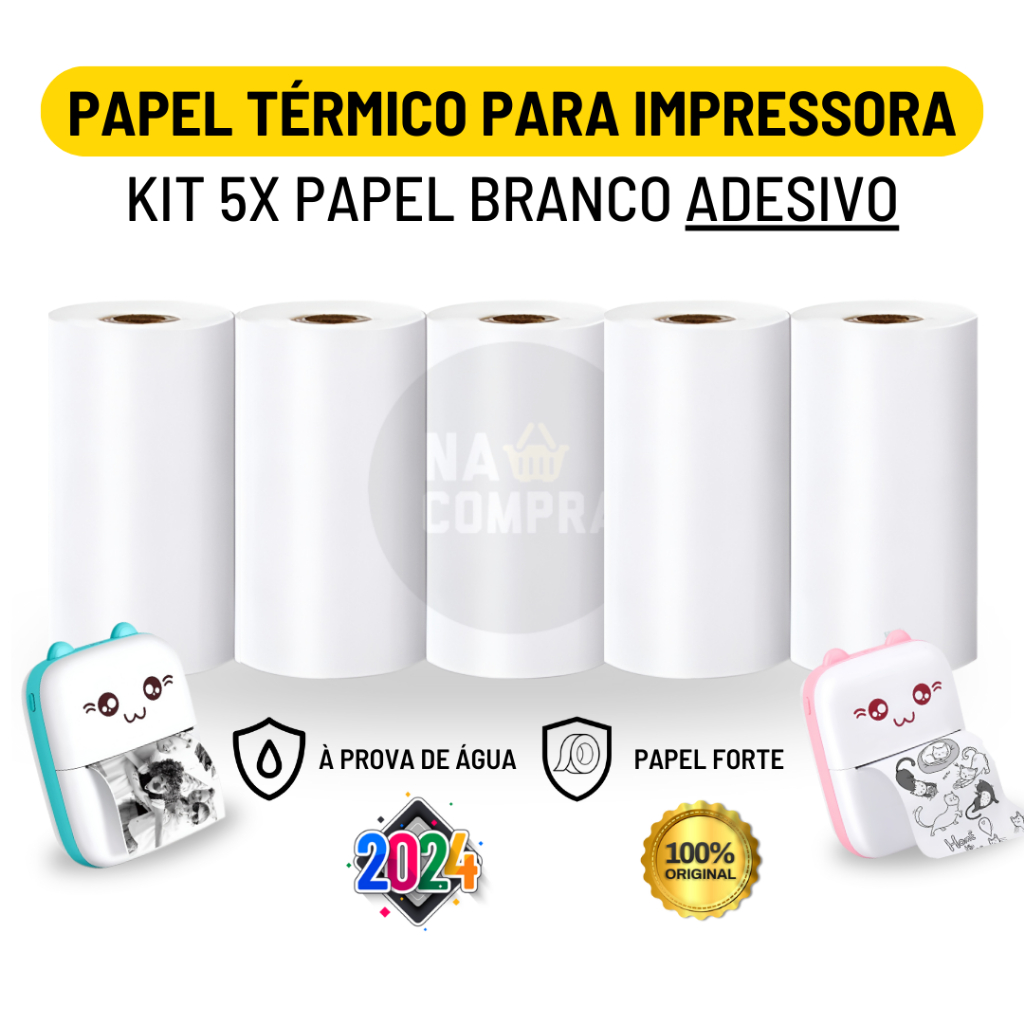Kit 5 Bobina Etiqueta Térmica Adesiva 57x30mm Branco Rolo Para Mini Impressora Portátil a Prova De Água