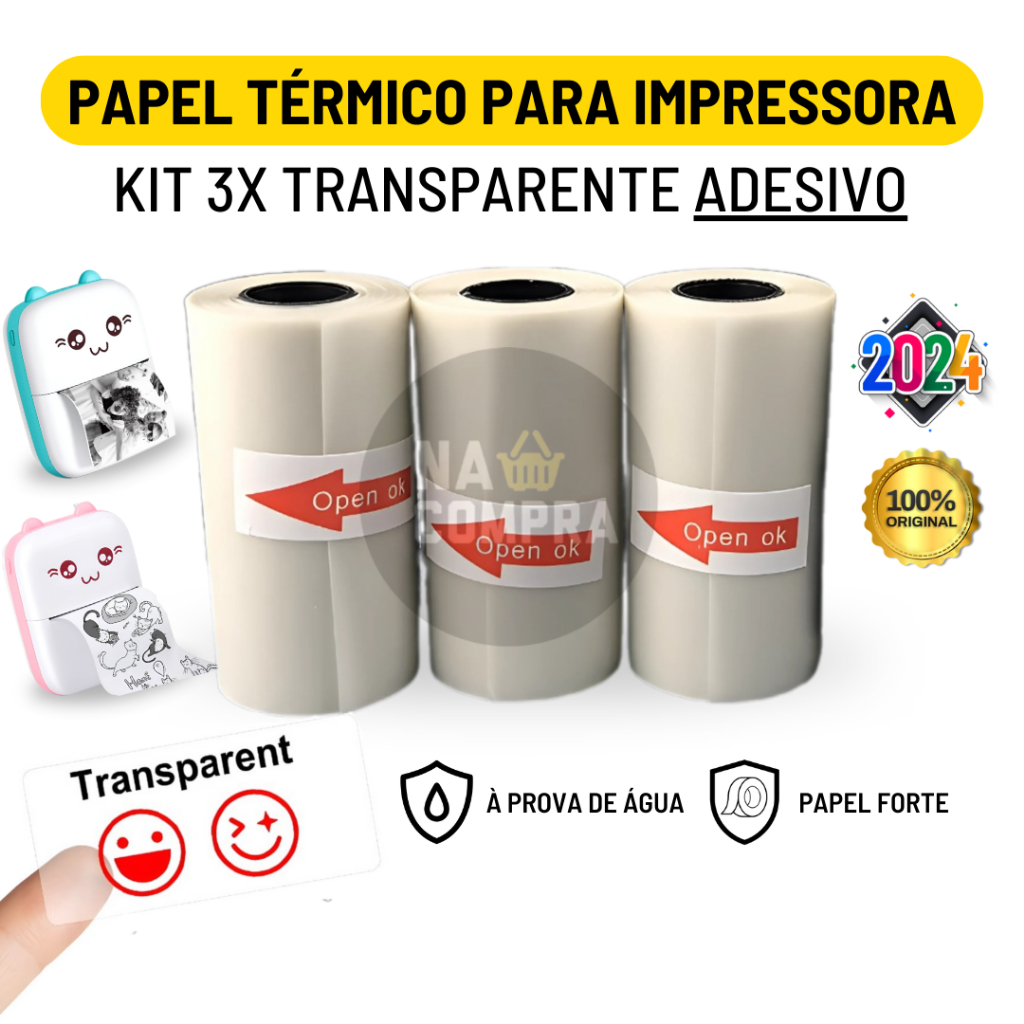 Kit 3 Bobina Etiqueta Térmica Adesiva Transparente 57x30mm Para Mini Impressora Portátil a Prova De Água