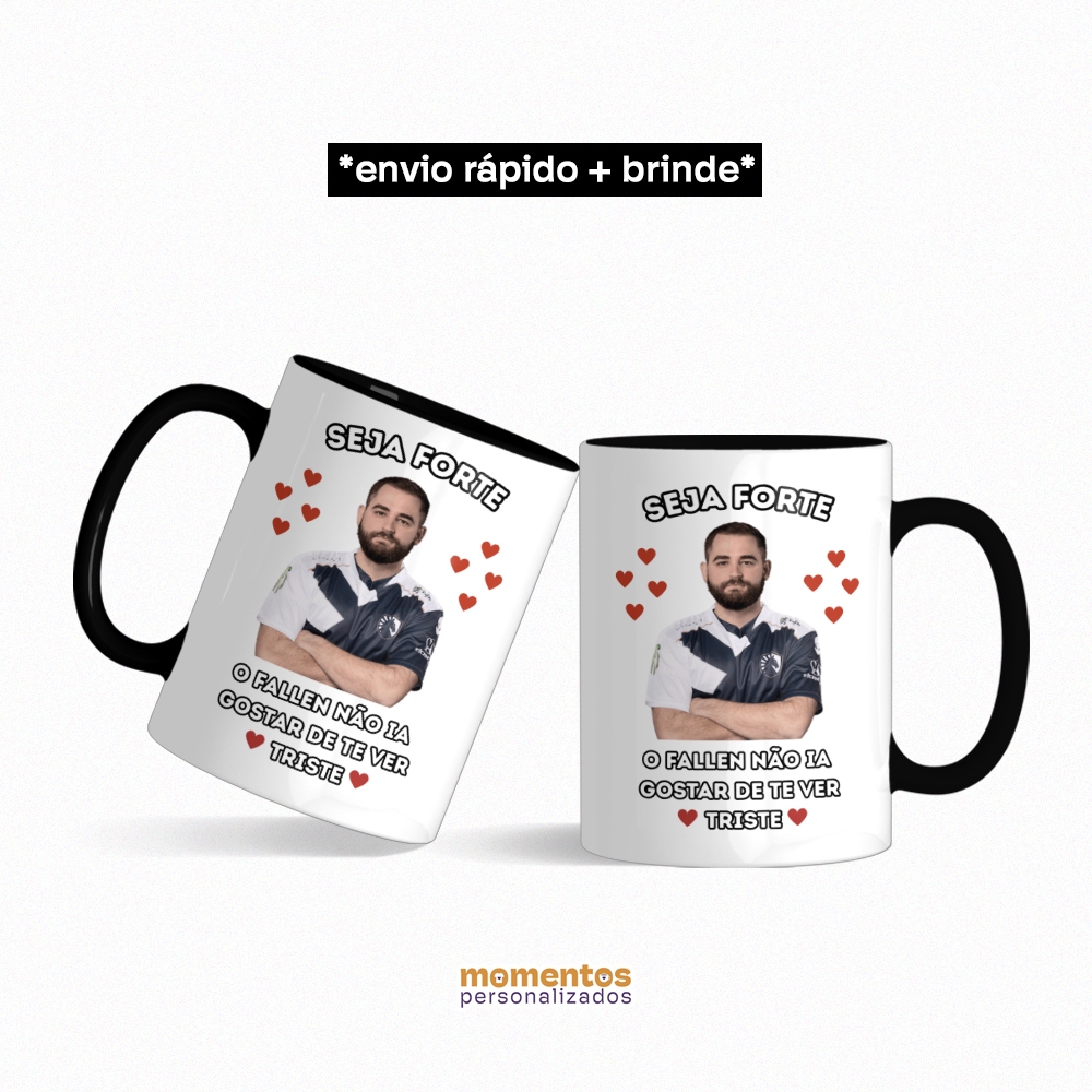 Caneca Cerâmica Seja Forte Fallen CSgo CS2 Meme Não Fique Triste Jogo Game Fps Personalizada Presente (+brinde)