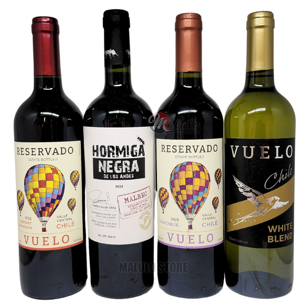Kit 4 Garrafas de Vinhos Importados Argentinos e Chilenos