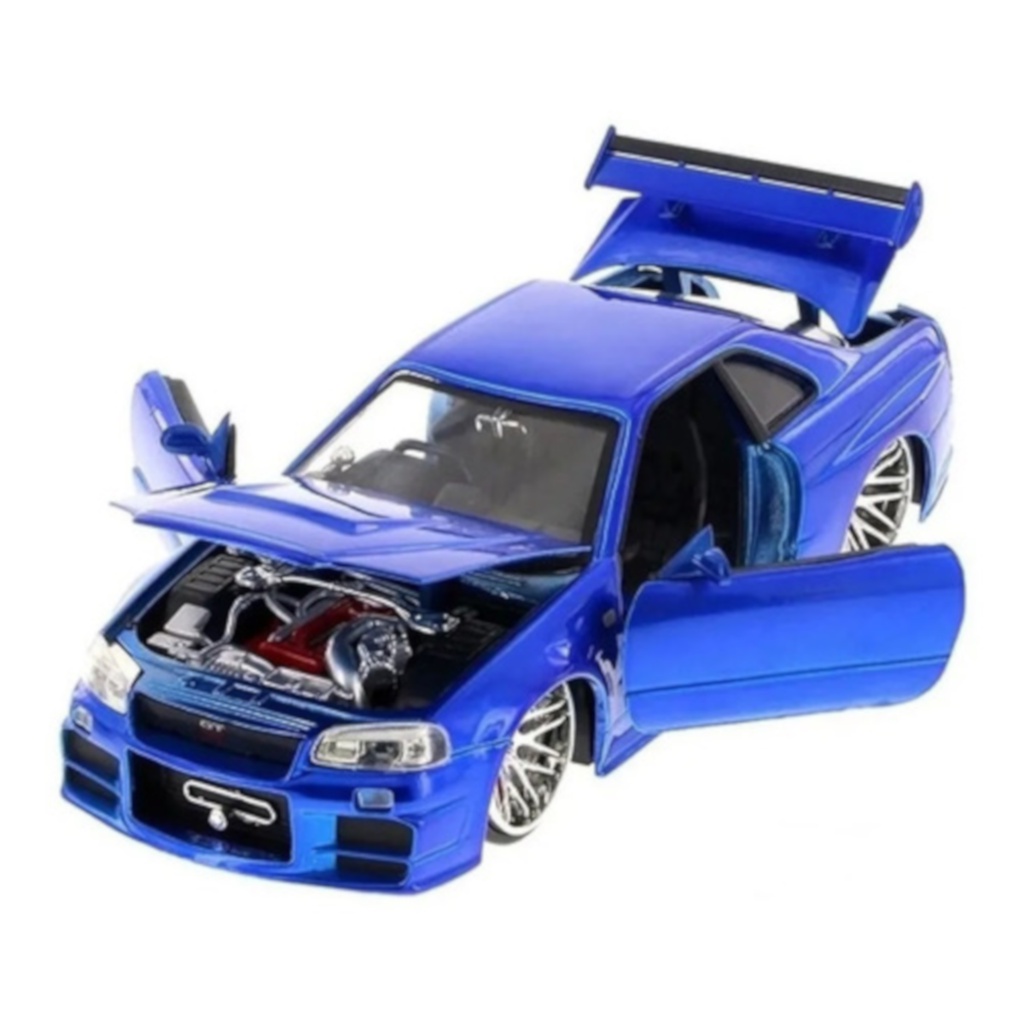 Carrinho Miniatura De Ferro 1:24 Velozes e Furiosos Nissan Skyline GTR R34 Abre Portas Capô Malas