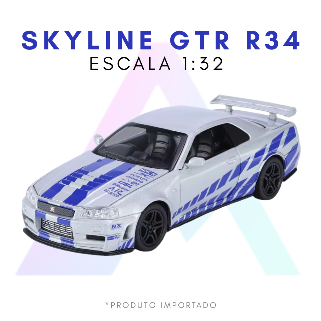 Nissan Skyline GTR R34 - Miniatura Escala 1:32 - Skyline Velozes e Furiosos - Cor Prata