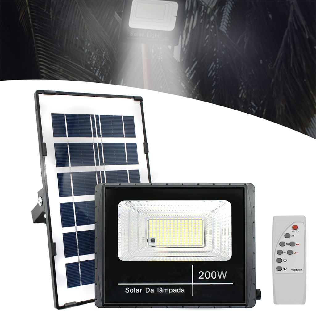 Refletor Led Solar 200w Holofote Placa Bateria Prova Dágua