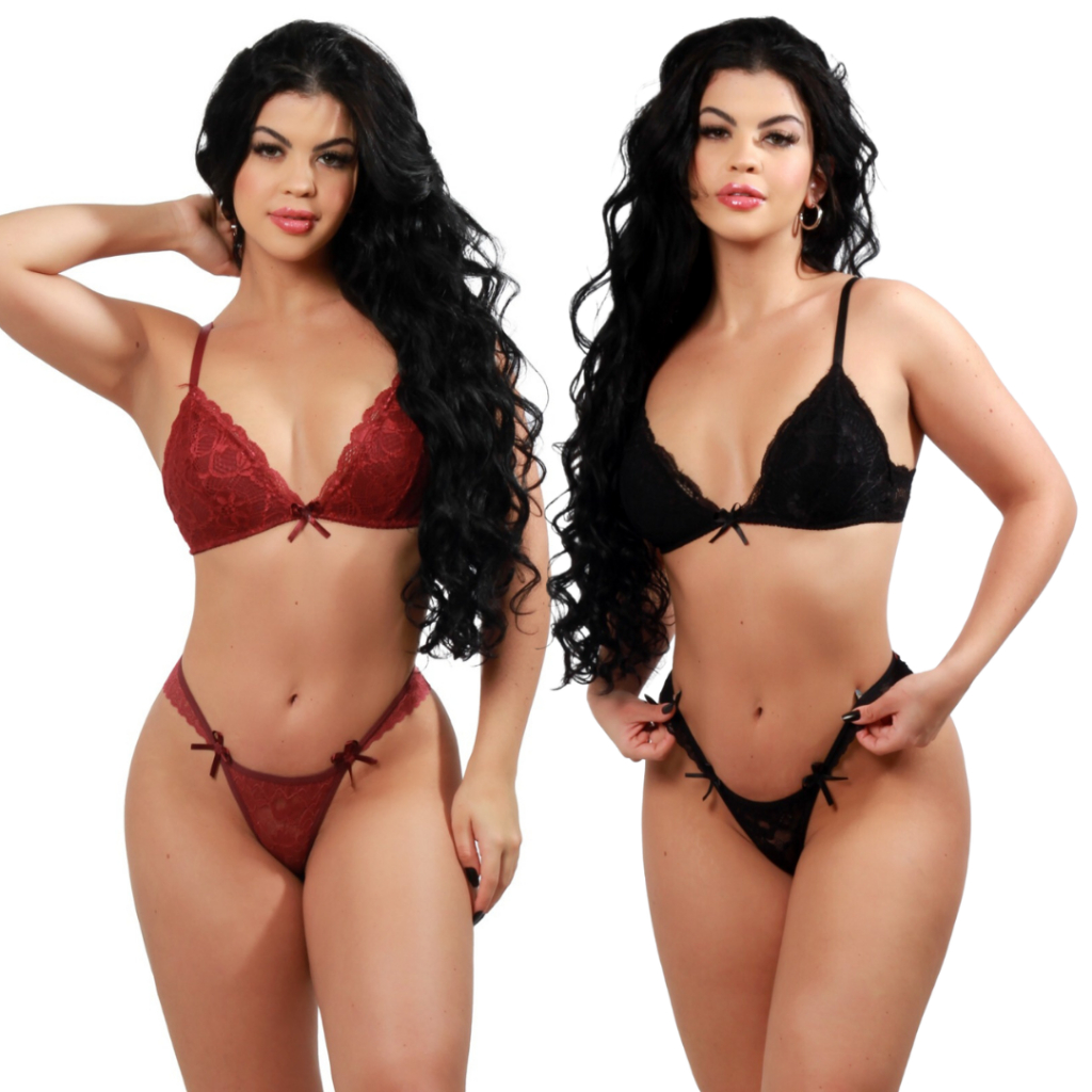 Kit 2 Conjuntos Rendado com Sutiã Triângulo e Calcinha Iza
