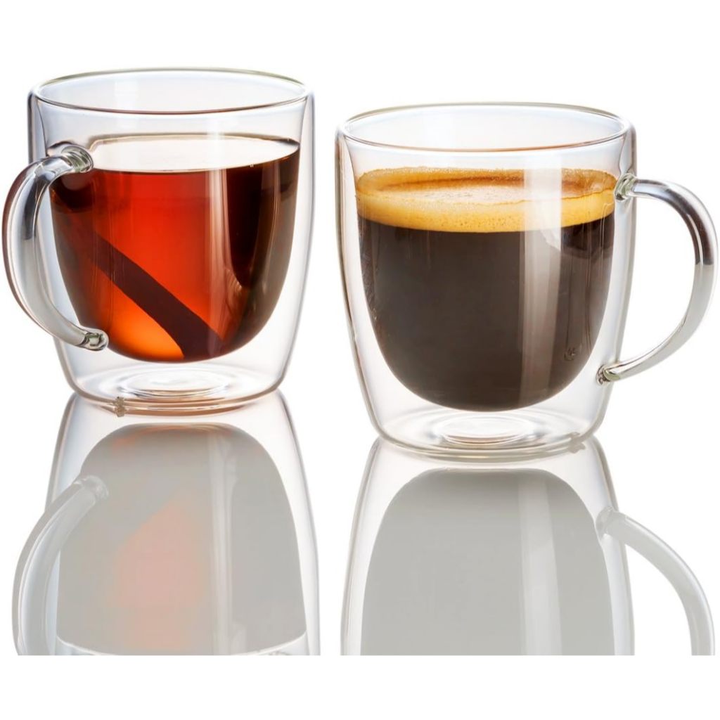 Kit 2 Xícaras Vidro Parede Camada Dupla Com Alça 250ml Borossilicato Gourmet Casa Nova