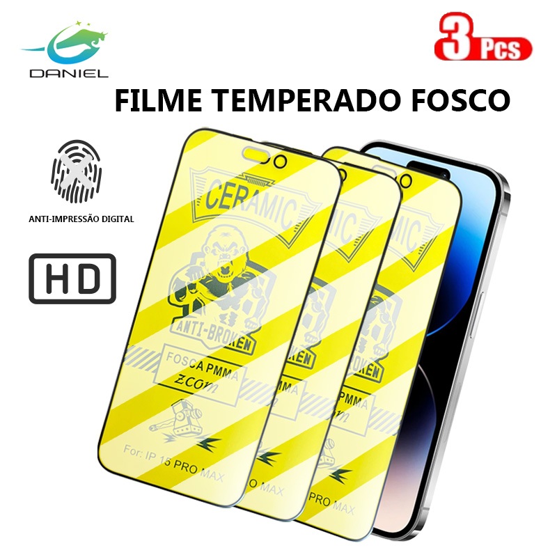 Película Kit 3 Premium Cerâmic Fosca iPhone 11 XR 12 PRO 15 14 13 X 8 7 6 Série Modelo À prova de explosão film