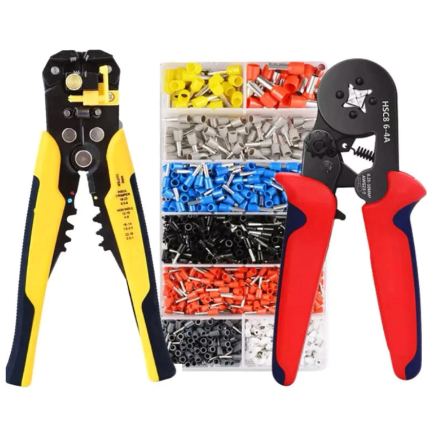Kit Alicate Crimpar Eletricista Master - 1200 Terminais Ilhos - Alicate Descascador 0,25 Até 10mm²
