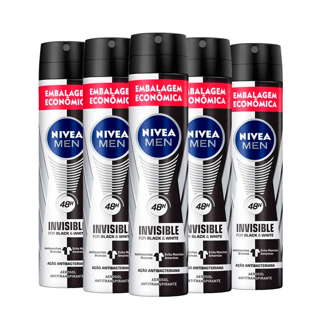 Kit Desodorante Aerosol Nívea Black & White Masculino 200ml - 5 unidades