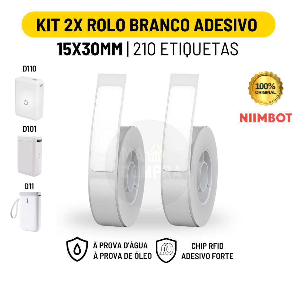 Kit 2 Etiqueta Térmica Adesiva Branco 15x30mm Rolo Com 420 Etiquetas Para Mini Impressora Niimbot D11, D110 - Envio Imediato