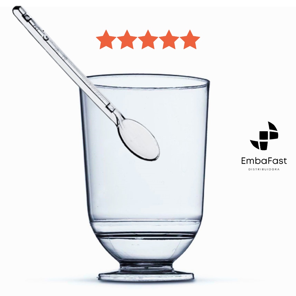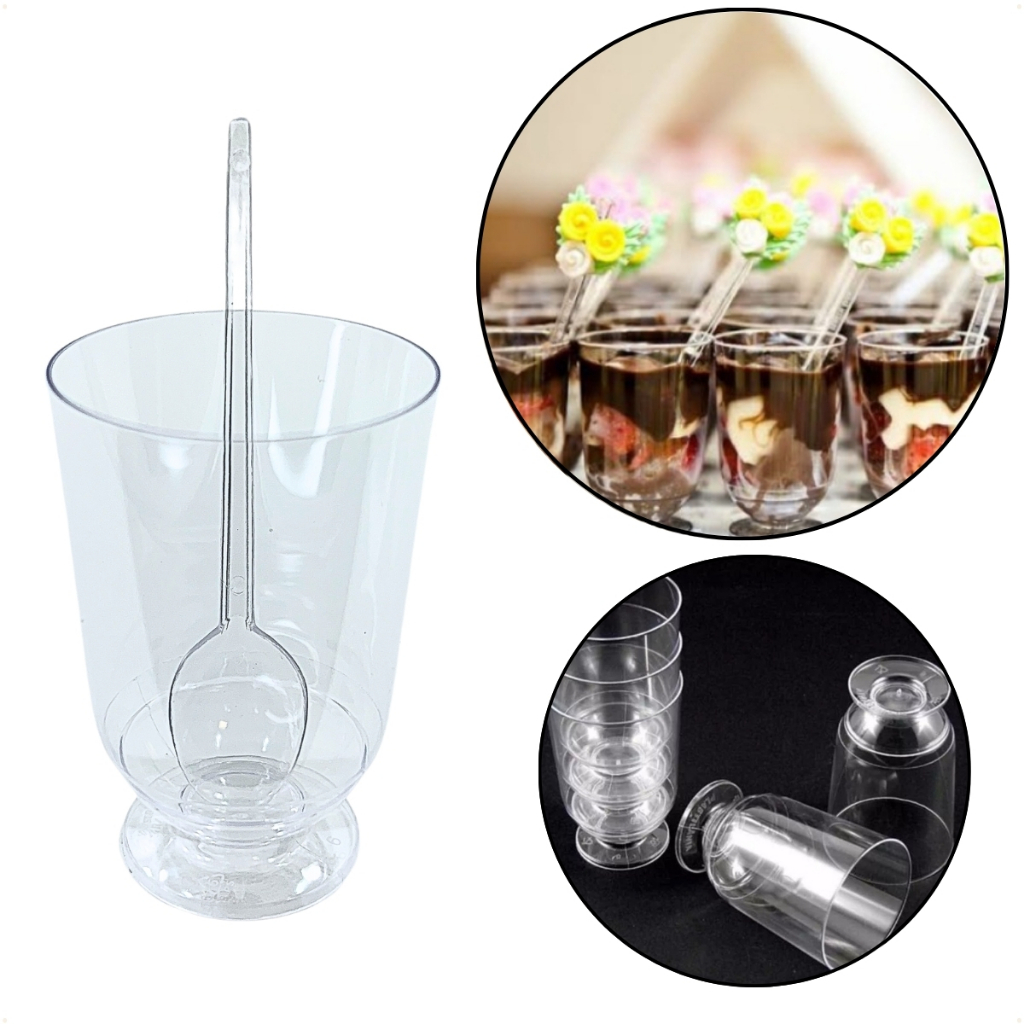 Kit 100 Mini Taça 25ml + Colherzinhas Doce Brigadeiro Tacinha Copinho Plástico Acrílico Transparente
