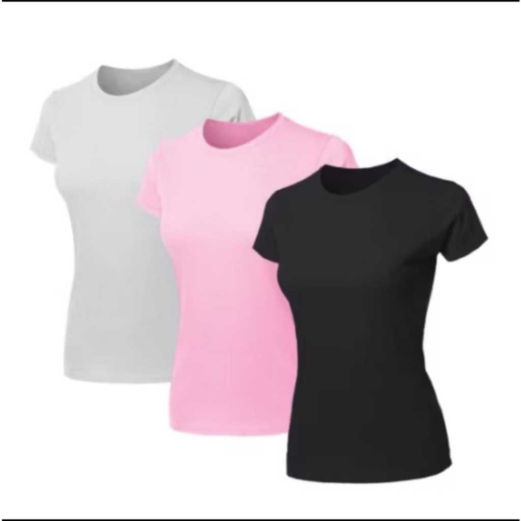 KIT DE 3 CAMISETAS FEMININAS DRY FIT BABY LOOK/ACADEMIA