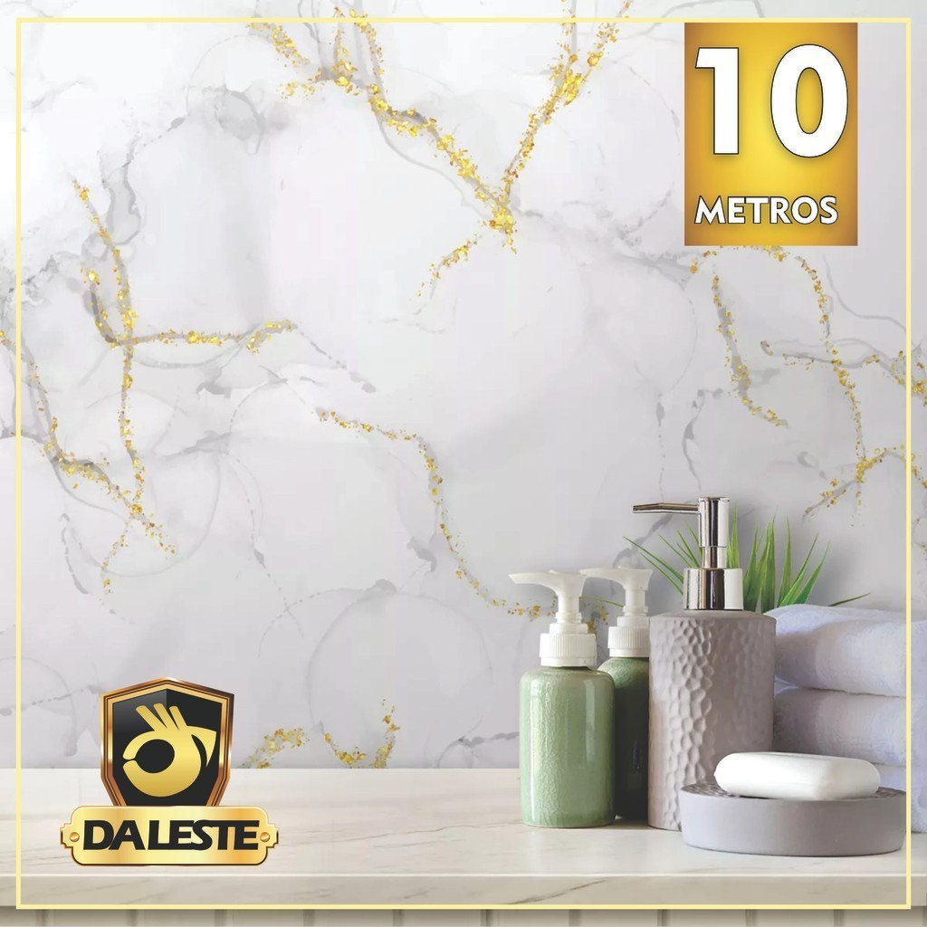 Papel de Parede Modelo Mármore Dourado 5 METROS x 45CM Adesivo Autocolante para Sala, Quarto