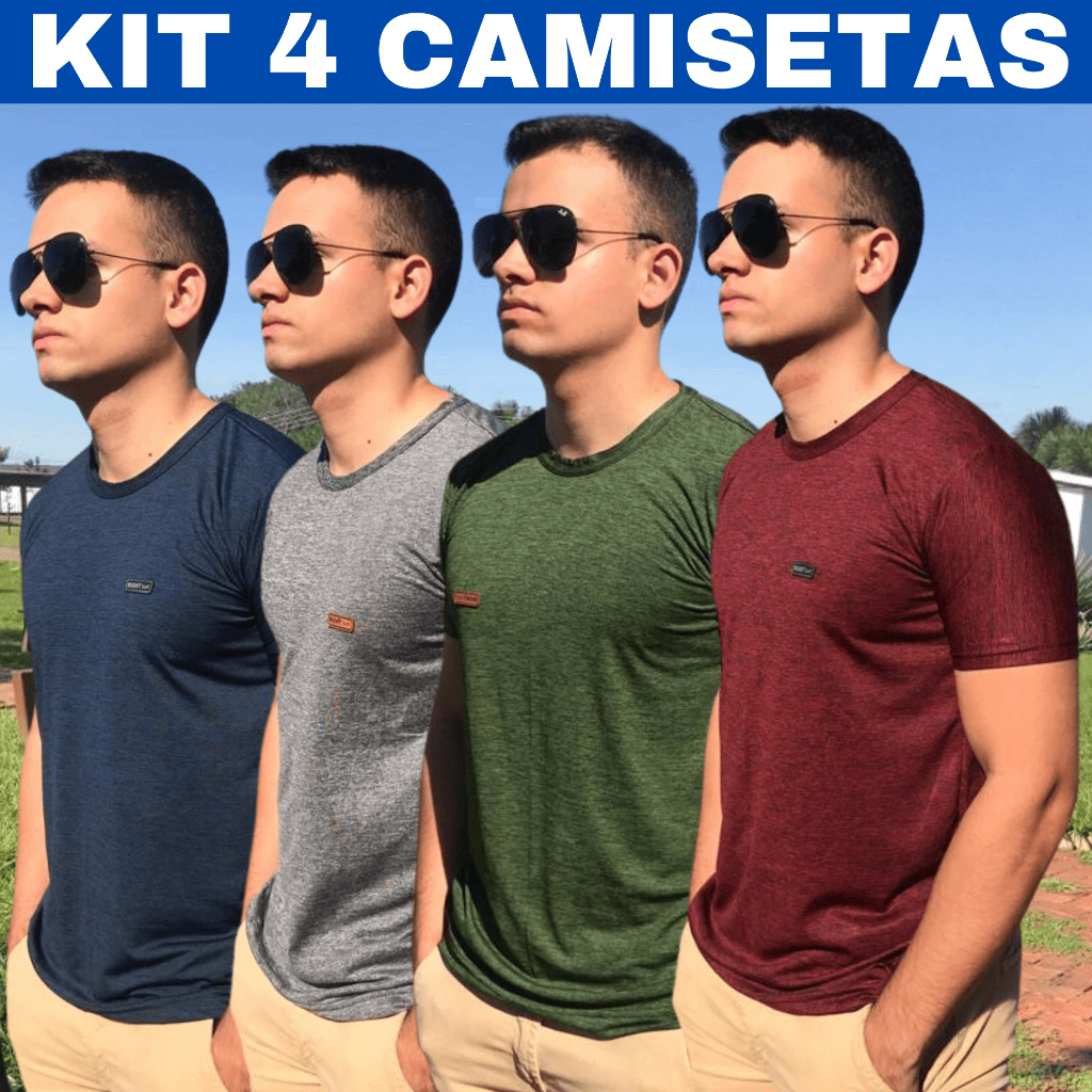 Kit 4 Camisetas manga curta Masculina Dry Fit Academia tecido leve seca rápido