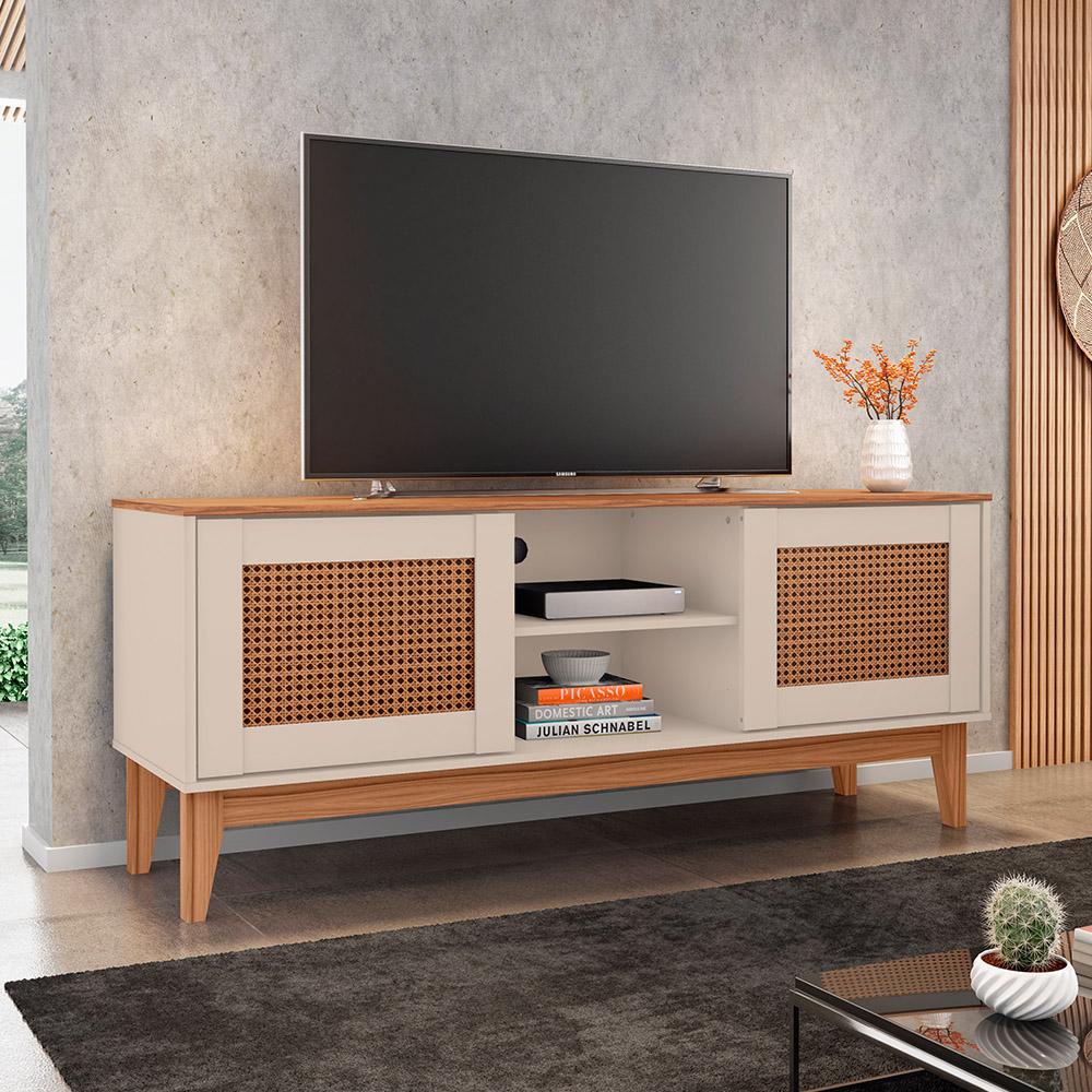 Rack Sala Safira para TV até 55 Polegadas com Pés em Madeira