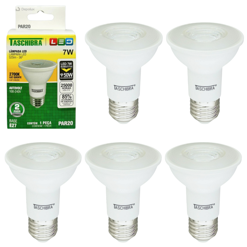 Kit 10 Lâmpadas Led Par 20 Taschibra 7w Bivolt 2700k(Quente) 4000K(Neutra) e 6500k(Fria)