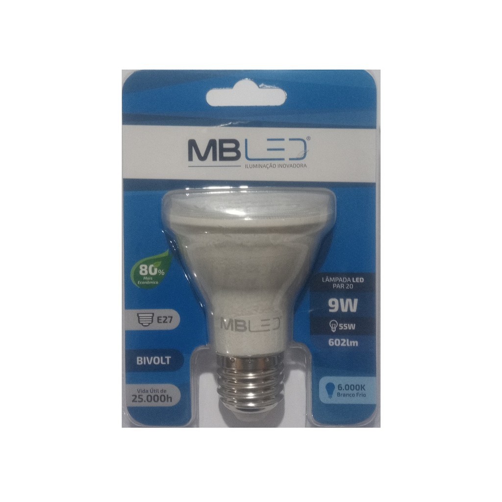 Kit 10 Lâmpadas Led MBLED Par 20 9W Bivolt Branca Fria 6000K