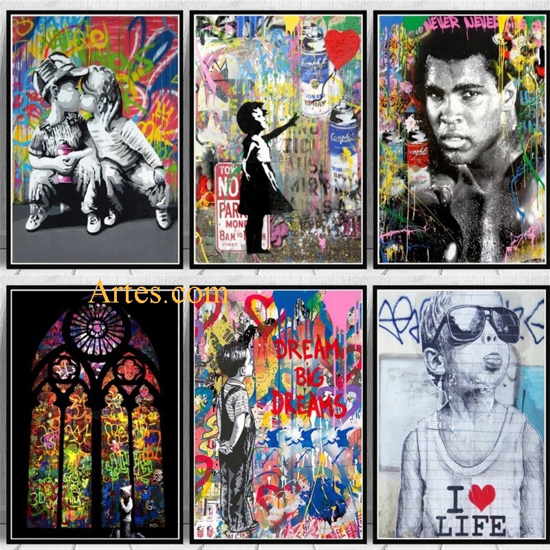 Quadro Decorativo Tamanho grande banksy macacos engraçados graffiti arte de rua fotos parede para a decoração moderna do quarto casa