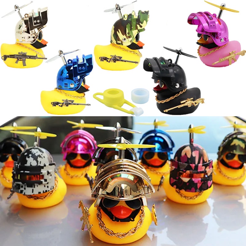 Bonito vento quebrado pato de borracha brinquedo para carro ornamentos pato amarelo painel do carro decorações bicicleta motocicleta hélice Nível 3 Capacete borracha pato