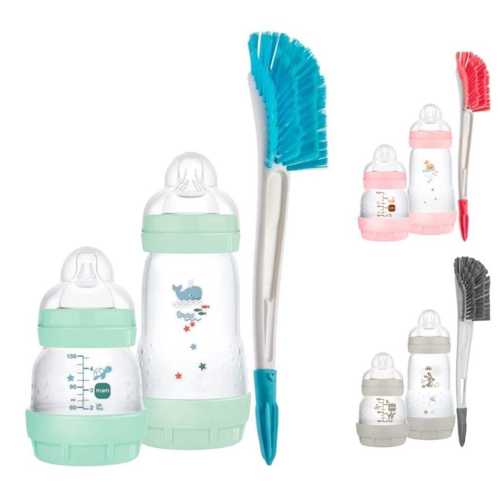 Kit 2 Mamadeiras Mam Easy Start Starter Set Anticólica 130ml e 260ml + Escova para Lavar Mamadeira com Limpador de Bico Buba