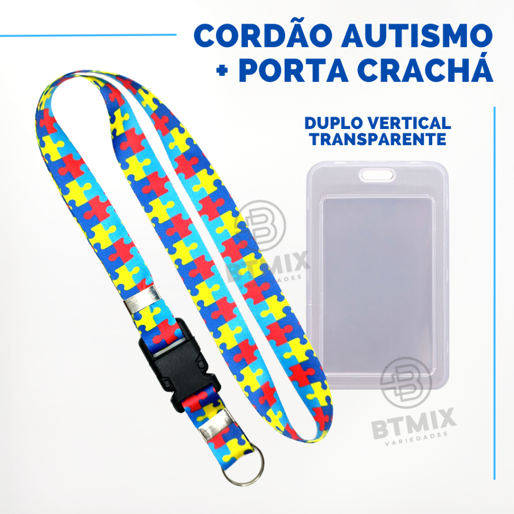 Kit Cordão Autista Autismo Pescoço Fecho Engate Rápido + Porta Cartão Crachá