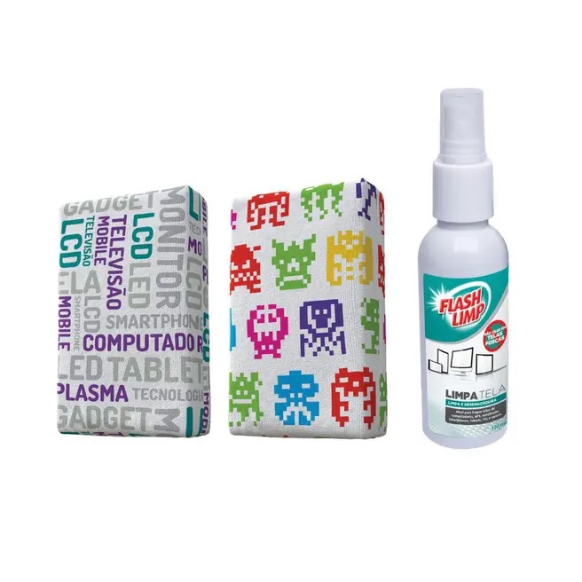 Kit Limpa Telas Estampas Sortidas KIT0528 Flash Limpa e Desengordura Tv celular Monitor