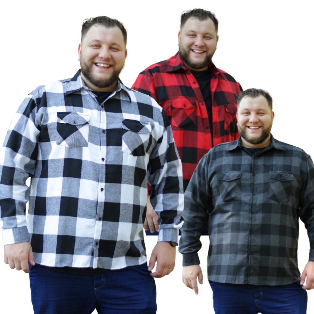 Camisa Flanela Tamanho Especial Grande Plus Size Kit 3 Peças