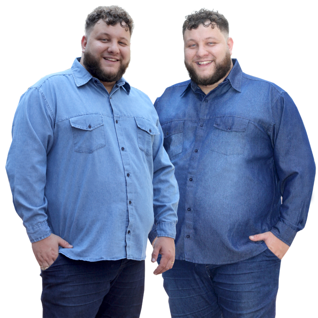 Camisa Jeans tamanho grande manga longa, Kit com 2 peças masculina plus size.