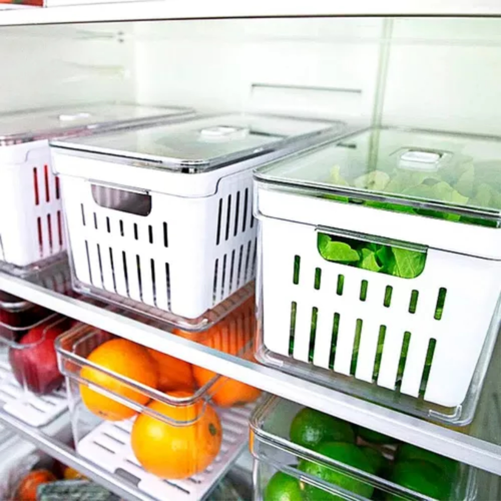 Kit 2 Organizadores De Geladeira 0,65/2,2/5 Litros Com Bandeja Drenagem e Tampa de Acrílico Clear Fresh Ou