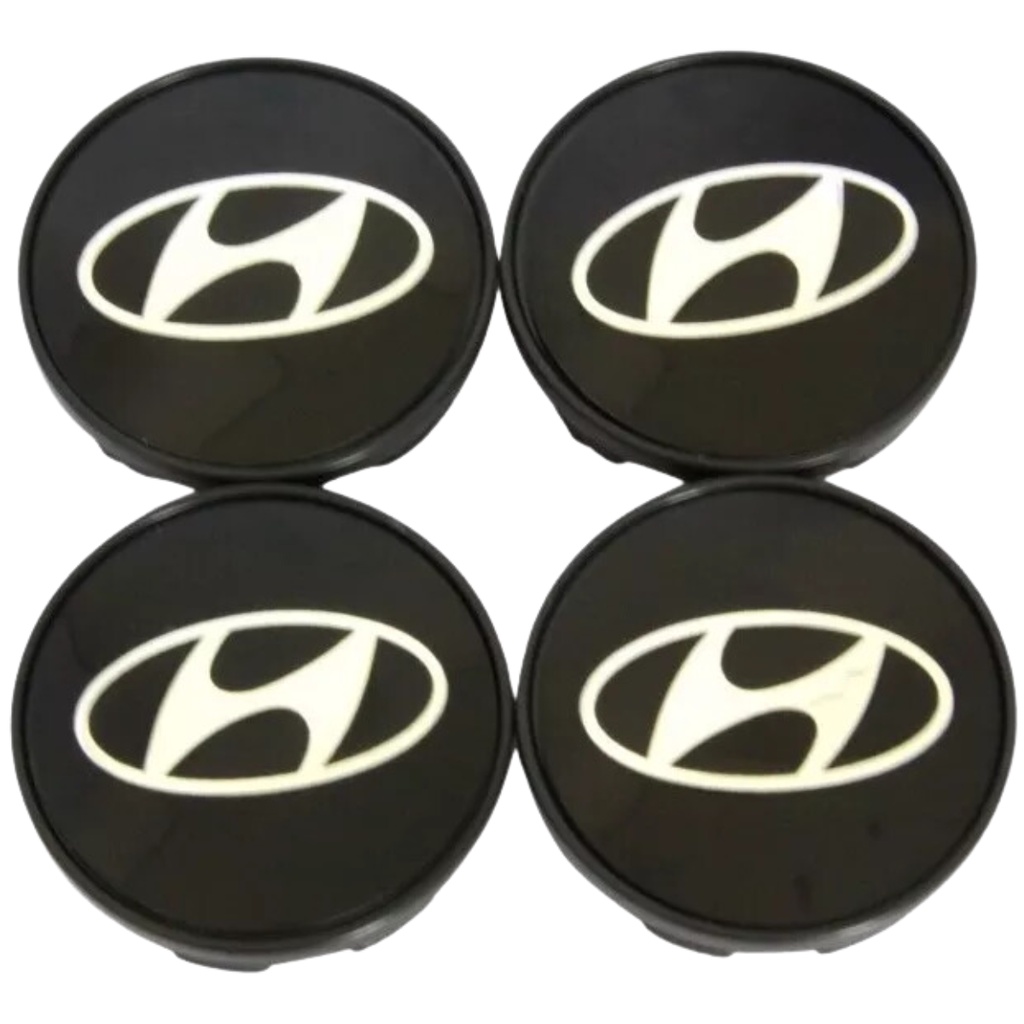 Kit Jogo 4 Calota Miolo Tampa Centro Roda Trocar Calotinha Roda Liga Leve Hyundai HB20 Creta i30 Tucson 2009 10 11 12 13 14 15 16 17 18 19 20 21 22 2023 Preto Alto Relevo Fácil Instalação Qualidade