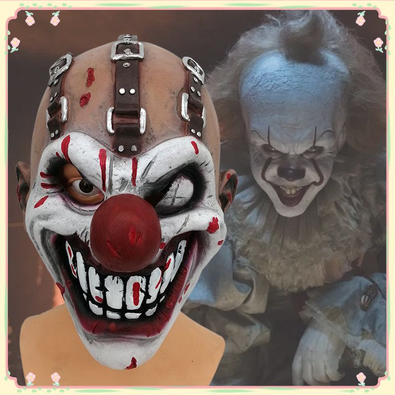 Horror Coringa Máscara Cosplay Assustador Assustador Mal Demônio Palhaço Assassinos Capacete de Látex Carnaval de Halloween Adereços de fantasia de festa 【ensolarado】
