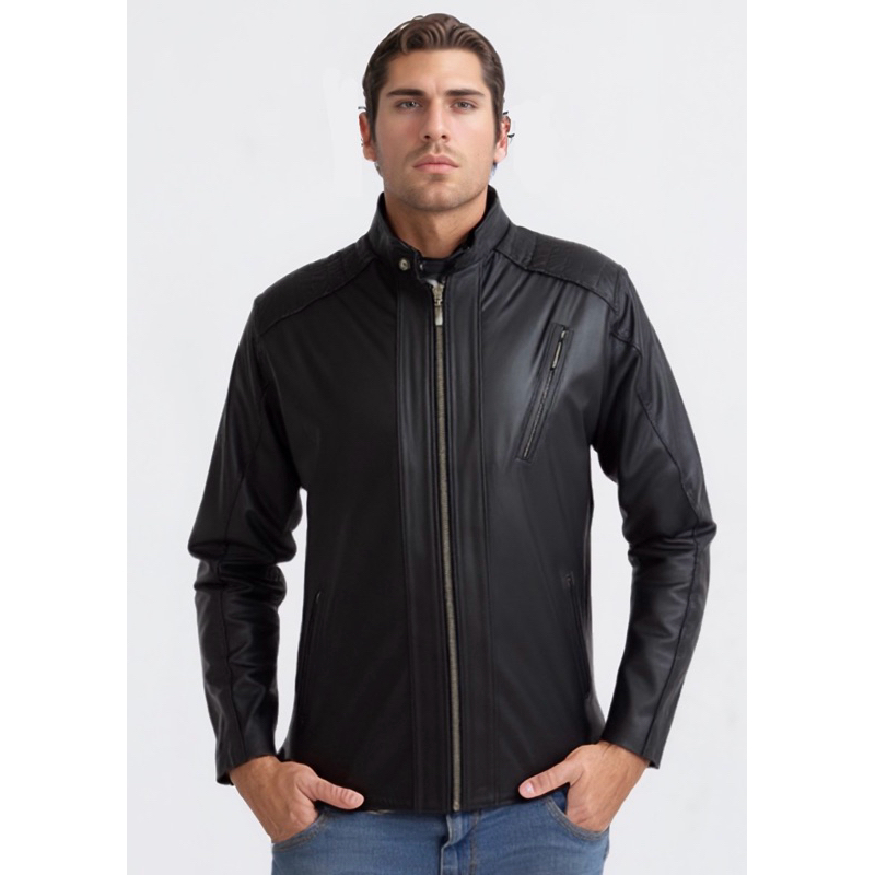 Jaqueta De Couro preto Masculina Slim Resistente Bobojaco masculina impermeável