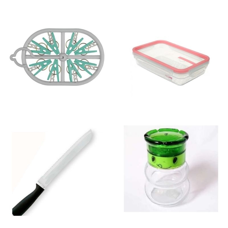 Kit doméstico para sua Casa. Ótima oportunidade. Contém: Faca de Pão 8 Polegadas Premium + Moedor manual de sal e Pimenta + Pote Plastico retangular Sanremo + Mini varal 8 prendedores FlashLimp