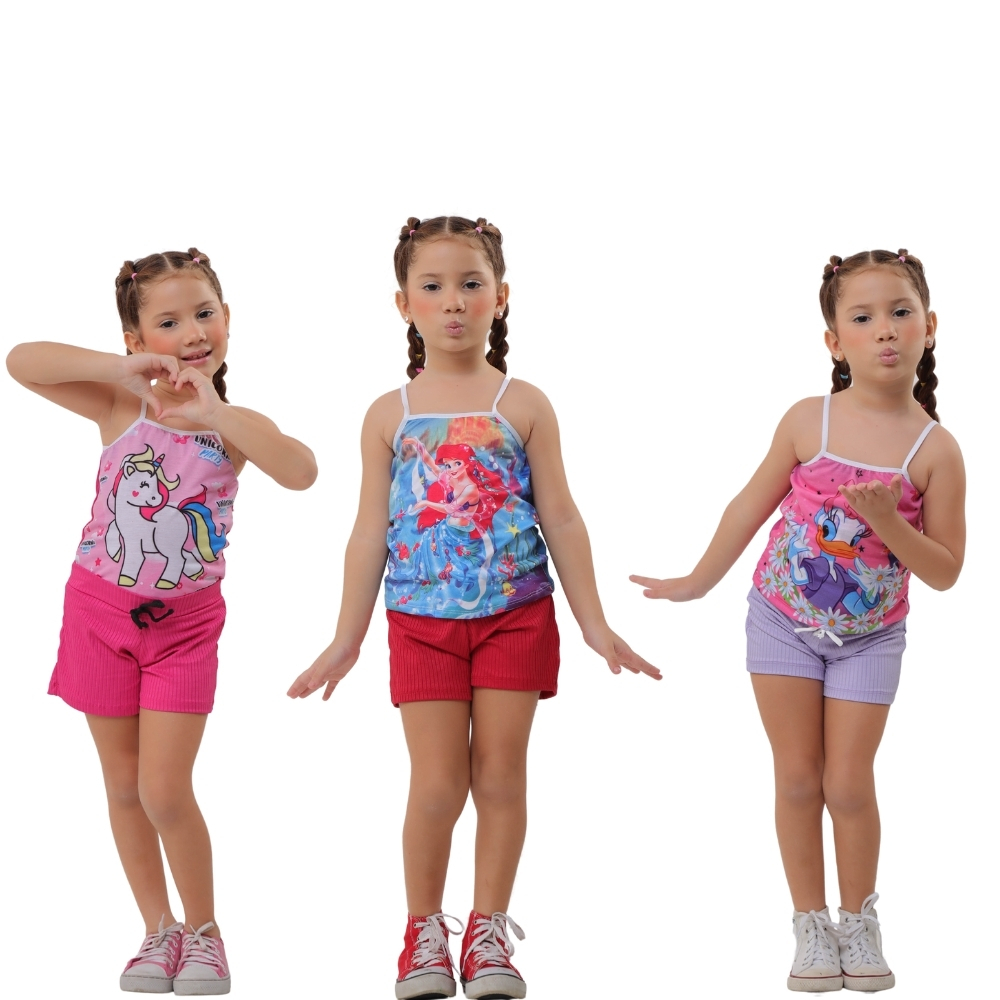 Kit 5 Blusas De Malha Infantil Feminina Malha Blusa Básica Alca Camiseta Roupa de Menina
