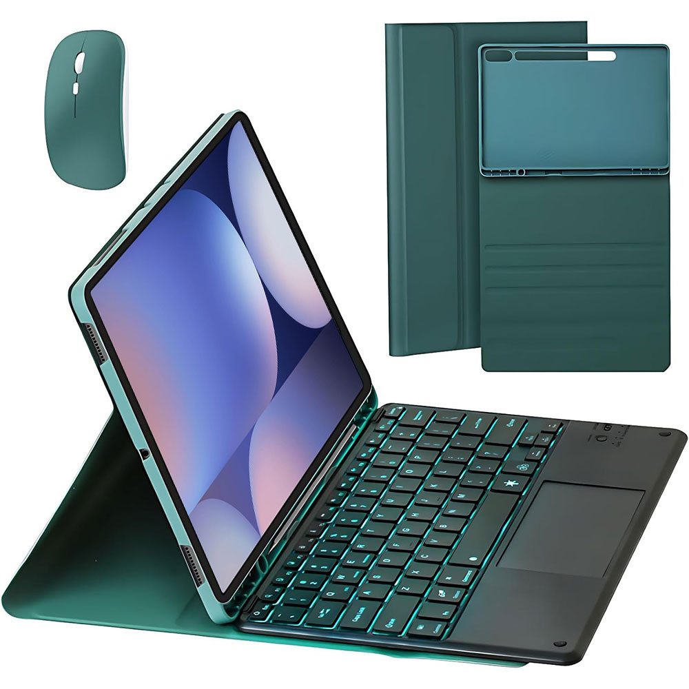 Capa De Mouse + Teclado Para Samsung Galaxy Tab S10 Plus/S9 FE S8 S7 12.4 Polegadas , Bluetooth Retroiluminado Com Touch