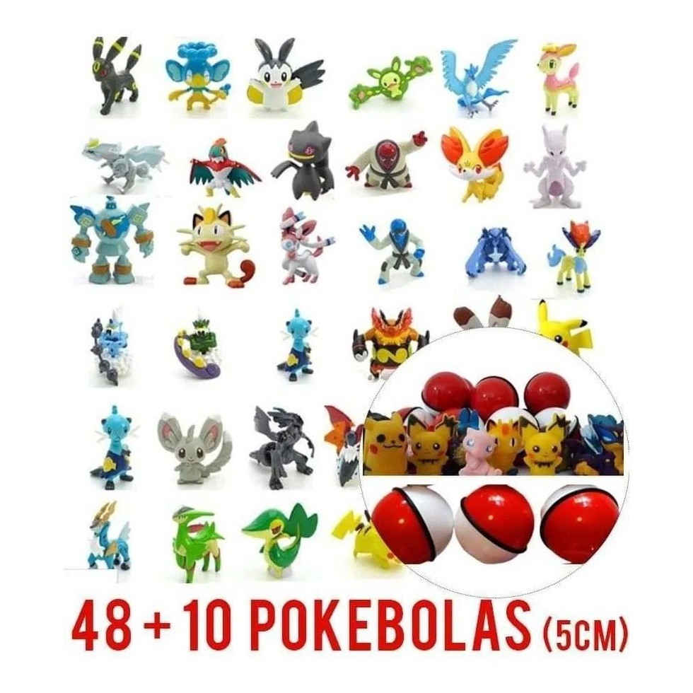 Kit 48 Miniaturas Pokemon 3cm + 10 Grandes + 10 Pokebolas