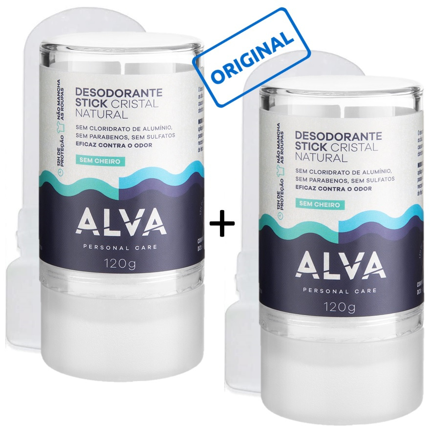 Desodorante Cristal Alva sem cheiro Natural Stick - original - pedra de sal - zero alumínio - não contém parabenos e sem perfume - vegano