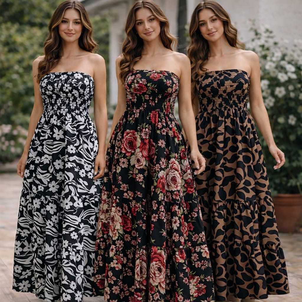 Vestido Longo Estampado Floral com Lastex – Conforto e Estilo