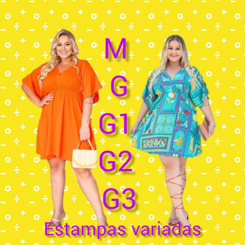 Vestido curto Feminino estampado liso manga flare estampa tropical listrado liso Moda Verão saída de praia passeio M G G1 G2 G3 plus size