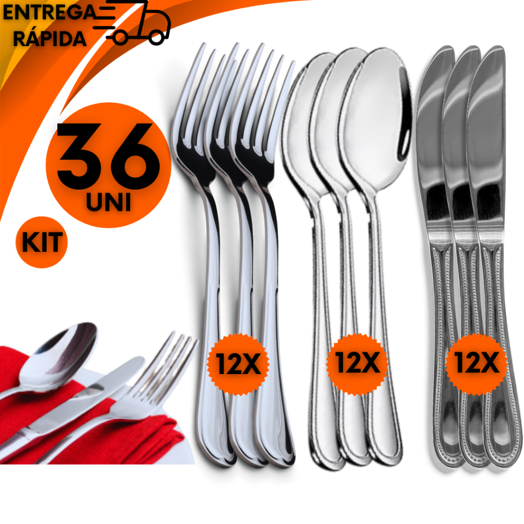Kit Jogo 36 Talher Inox Qualidade Garantida 12 Colher 12 Faca 12 Garfo Cozinha Restaurante Buffet Qualidade Resistência
