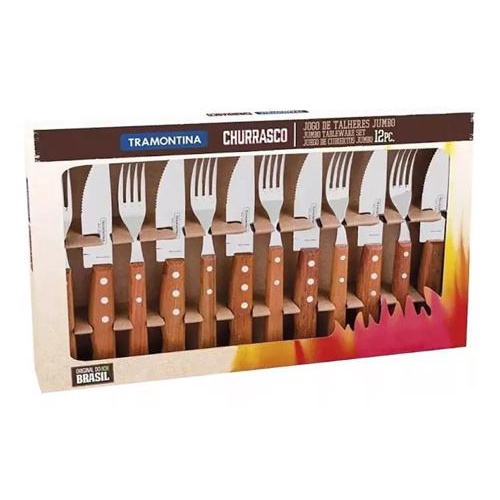 Kit Jogo de Churrasco Garfo e Faca Conjunto 12 Peças Jumbo Tramontina
