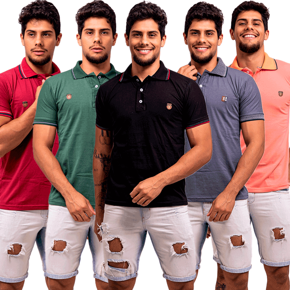Kit 5 Camiseta Gola Polo Masculina 100% Algodão Varias Cores Camisa Basica Para Homem