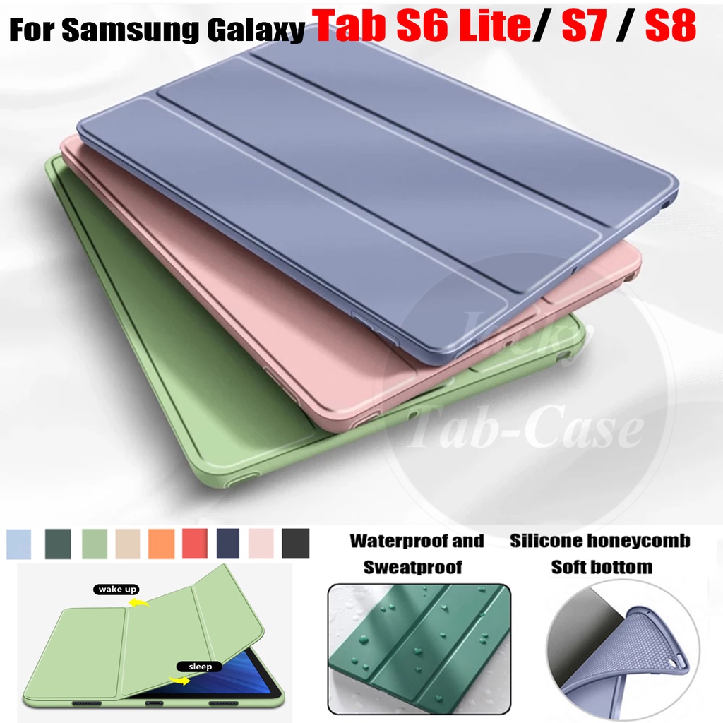 Para Samsung Galaxy Tab S6 Lite 2022 Edição 10.4 " S7 S8 11.0 " Suporte Dobrável Estojo De Mesa SM-P610 P613 P615 P619 T870 T875 X700 Moda PU Capa Flip De Silicone Macia De Couro