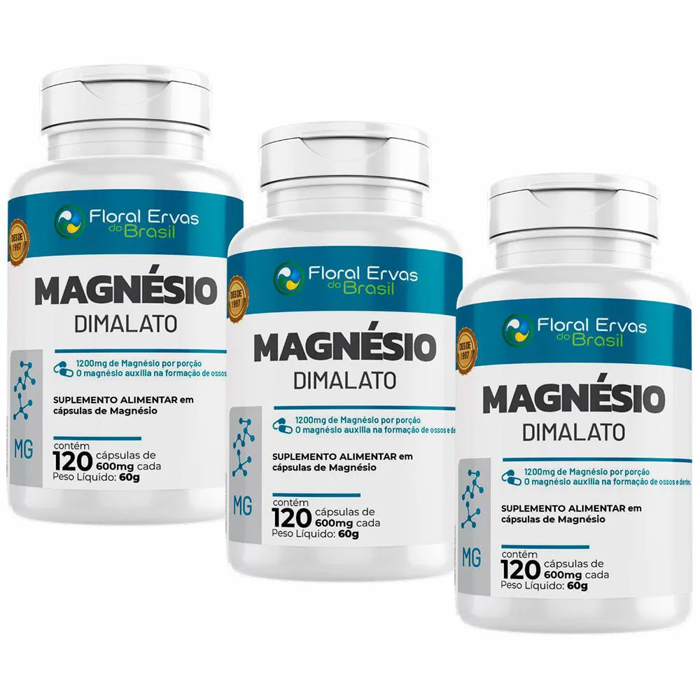 KIT 3X MAGNéSIO DIMALATO - (120 CAPSULAS CADA) - FLORAL ERVAS DO BRASIL