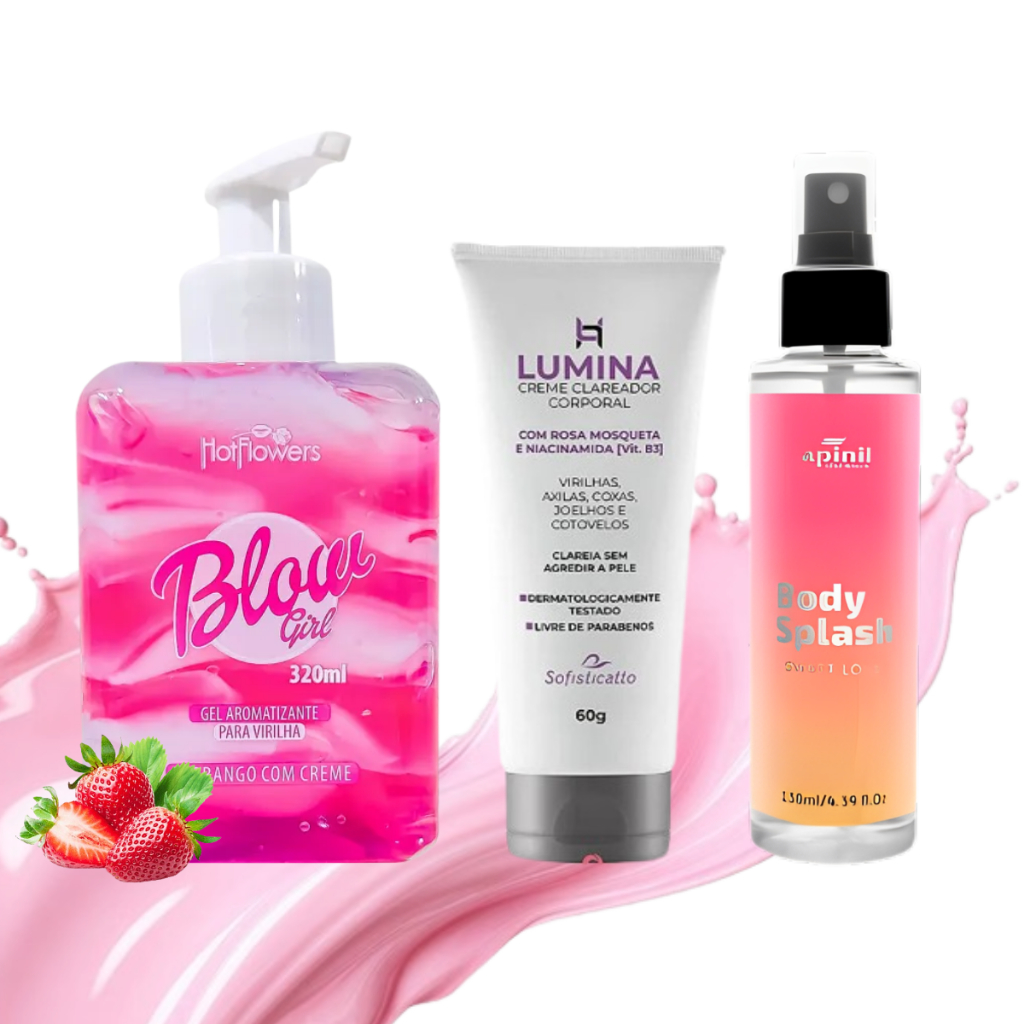 Creme Blow Girl Hidratante Rosa e Clareador Virilha Axilas e Body Splash 130ml Kit
