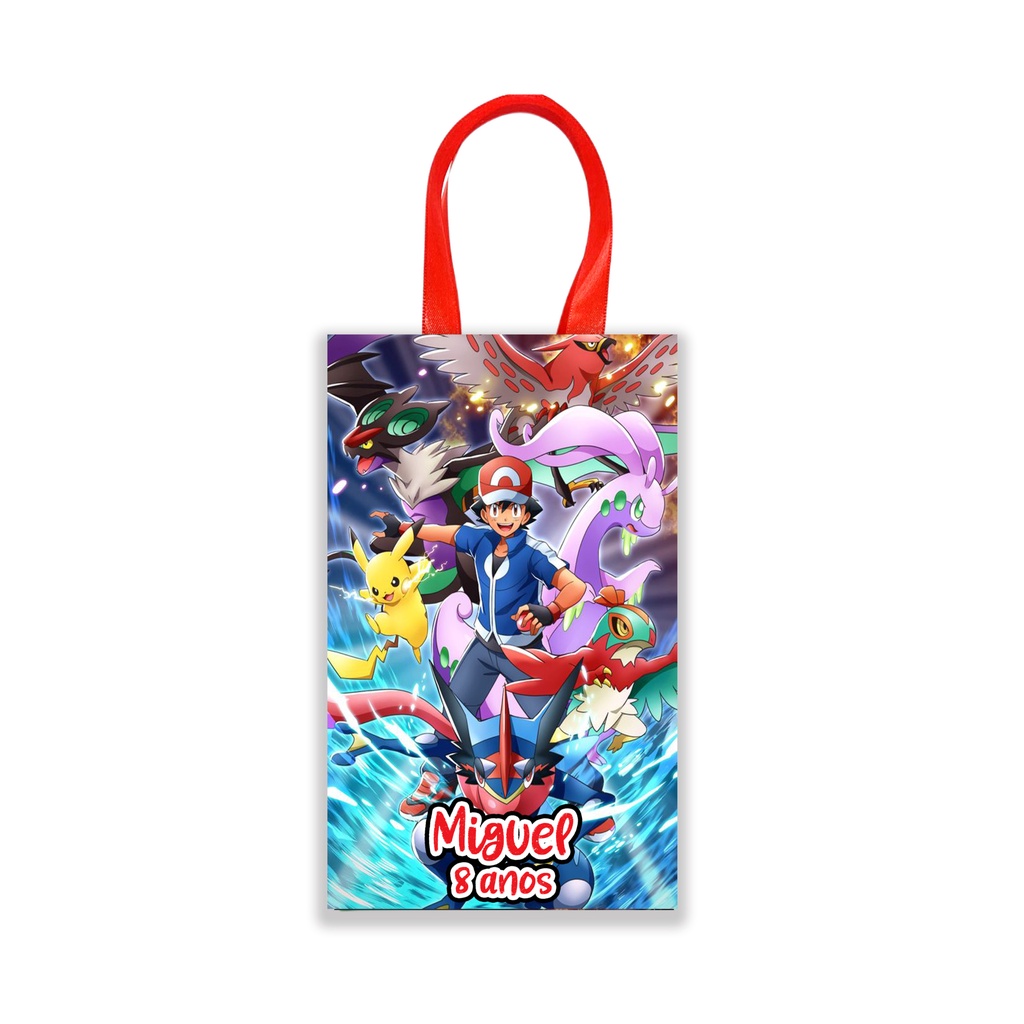 15 Sacolinhas Surpresa Personalizadas Tema Pokémon Tamanho 16 cm x 4 cm x 10 cm