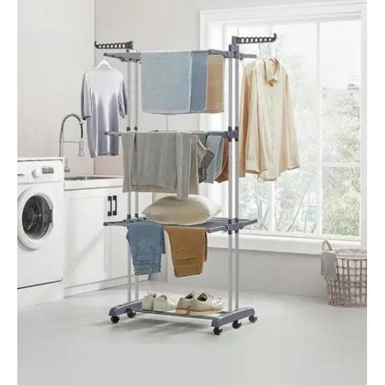 Varal De Chão 3 Andares Roupa Calcinha Grade Dobrável Portátil e Com Rodinhas