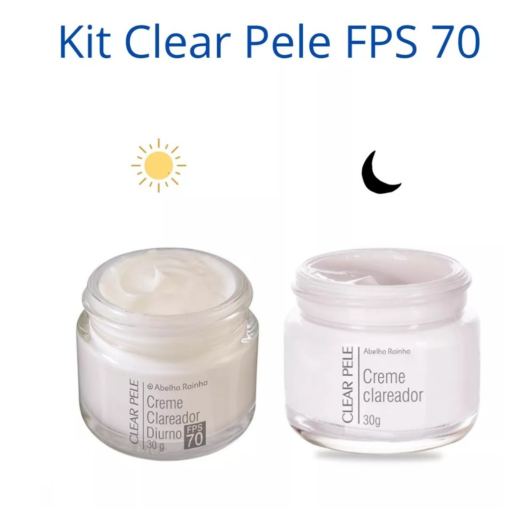 Kit 2 Clear Pele - Creme Clareador de Manchas Faciais Dia + Noite Abelha Rainha (Melasma, Sardas)