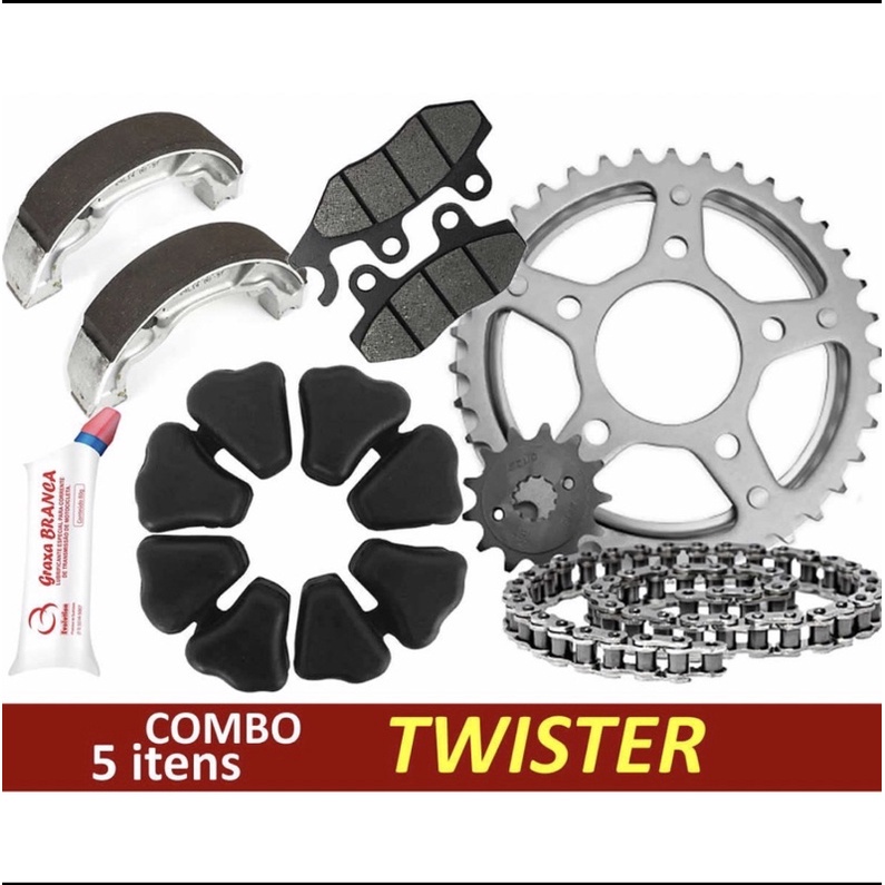 Kit Relação Transmissão Aço 1045 CBX 250 Twister 2003 /2008 Combo>+Lona/Pastilha de Freio+Graxa branca p/corrente+Coxim Coroa