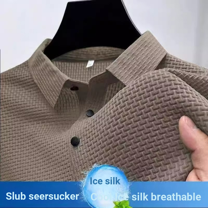 Camisa Polo de seda gelo manga curta camiseta masculina verão lapela Casual camiseta gola alta respirável gelo meia mang