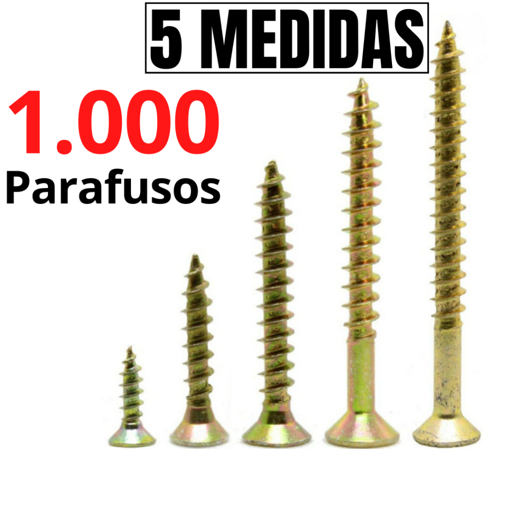 Kit Parafuso para Madeira Chipboard Philips com 1000 Parafusos para MDF Móveis 14 - 25 - 30 - 35 - 40 Palet Parafuso Madeira Philips Parafuso moveis